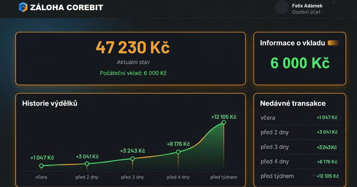 Moje žena je finanční analytička a vždy si všímala podobných projektů. Teď je v šoku – systém skutečně vydělává peníze! První prostředky jsme již vybrali. Je to úžasné.